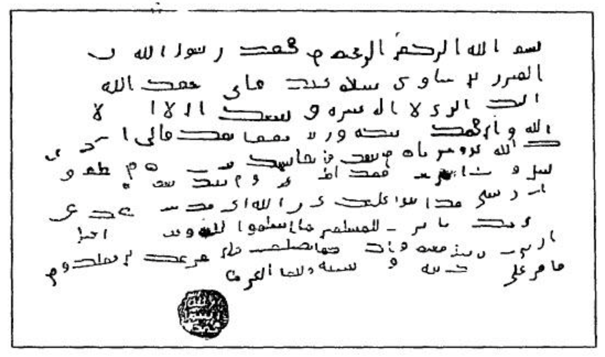 صورة كتاب النبي الى المنذر بن ساوي وهو بالخط الحجازي